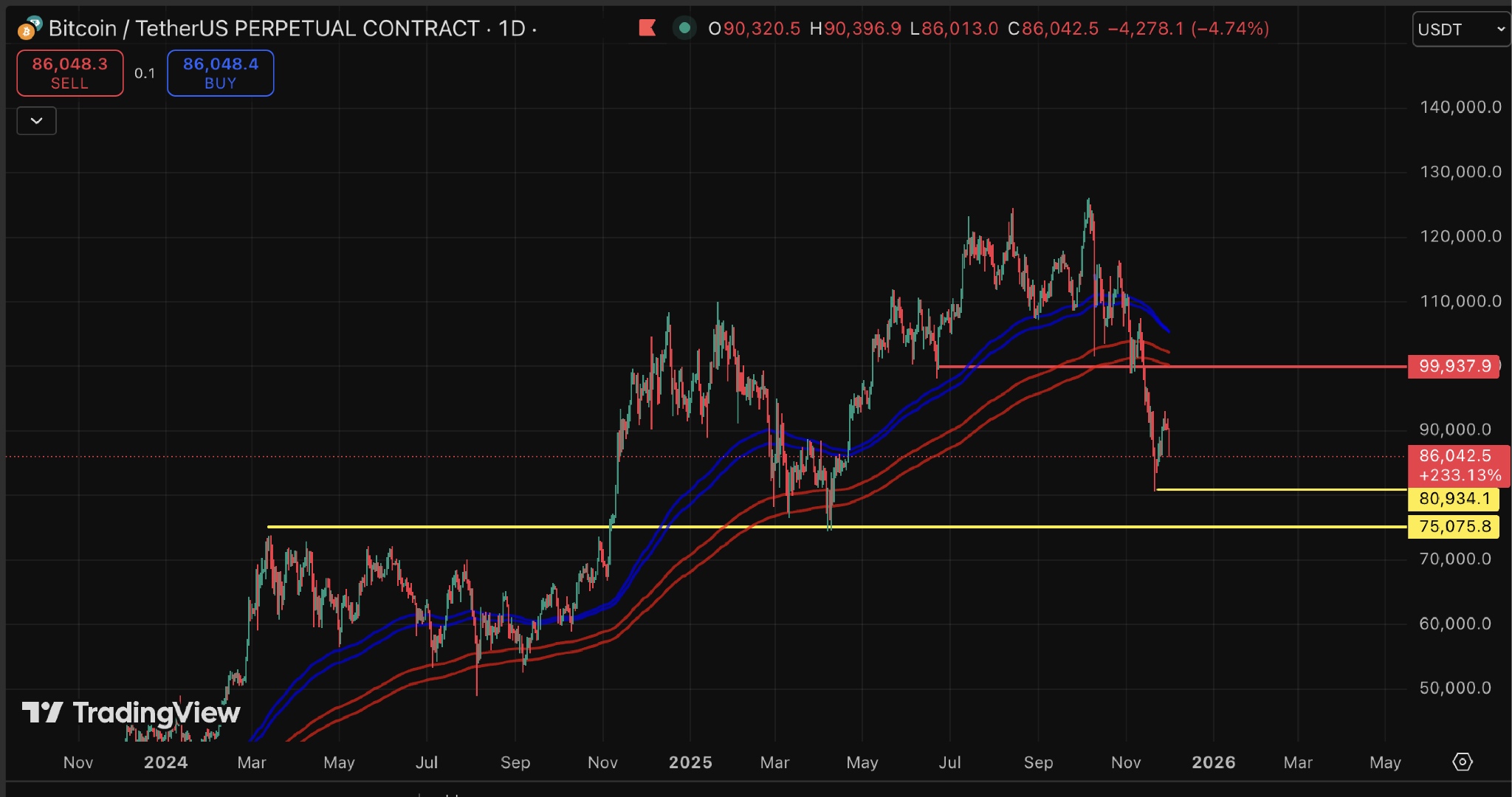 من وجهة نظرنا، ومع ازدياد الطابع المؤسسي لسوق العملات المشفرة، ستلعب العوامل الاقتصادية الكلية دورا أكبر في توجيه حركة الأسعار. ولكي تتجنب بيتكوين الدخول في مرحلة هبوط أعمق، يجب عليها الحفاظ على منطقة الدعم الحرجة بين 80,000 و82,000 دولار وسط استمرار التقلبات