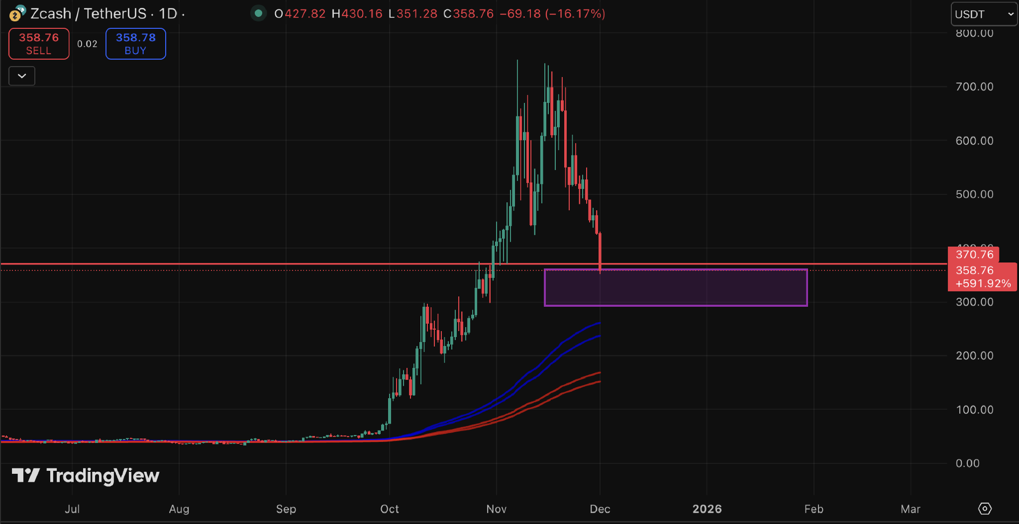 فشل $ZEC في الحفاظ على قوته السابقة وتراجع إلى منطقة طلب. وباعتبار أن هذه الحركة مدفوعة بالأساسيات والطلب الفوري، فقد لا تكون دورة $ZEC الحالية قد انتهت بعد، لذلك يجب مراقبة حركة السعر عن كثب عند مستوى الدعم.